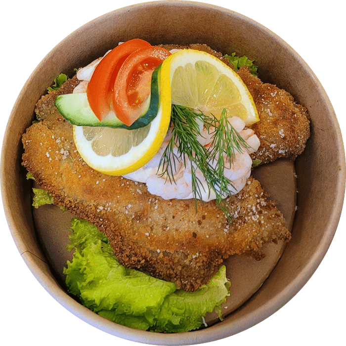 - Pandestegt fiskefilet med remoulade og citron